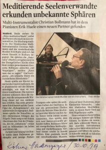 Christian Bollmann en Erik Huele brengen een programma onder de titel ‘Atmospheren’. Op uitnodiging voor een concert in het planetarium te Bochum (D), voelden zij zo’n herkenning en resonantie in elkaars spel, dat zij verdere samenwerking zijn aangegaan. Hun muziek, – grotendeels eigen composities met ruimte voor improvisatie -, neemt je mee op een reis langs uiteenlopende sferen: van mystiek tot Afrikaanse Groove, van Satie tot ambient en minimal Jazz, van wereldmuziekliederen en mantra’s naar de stilte.